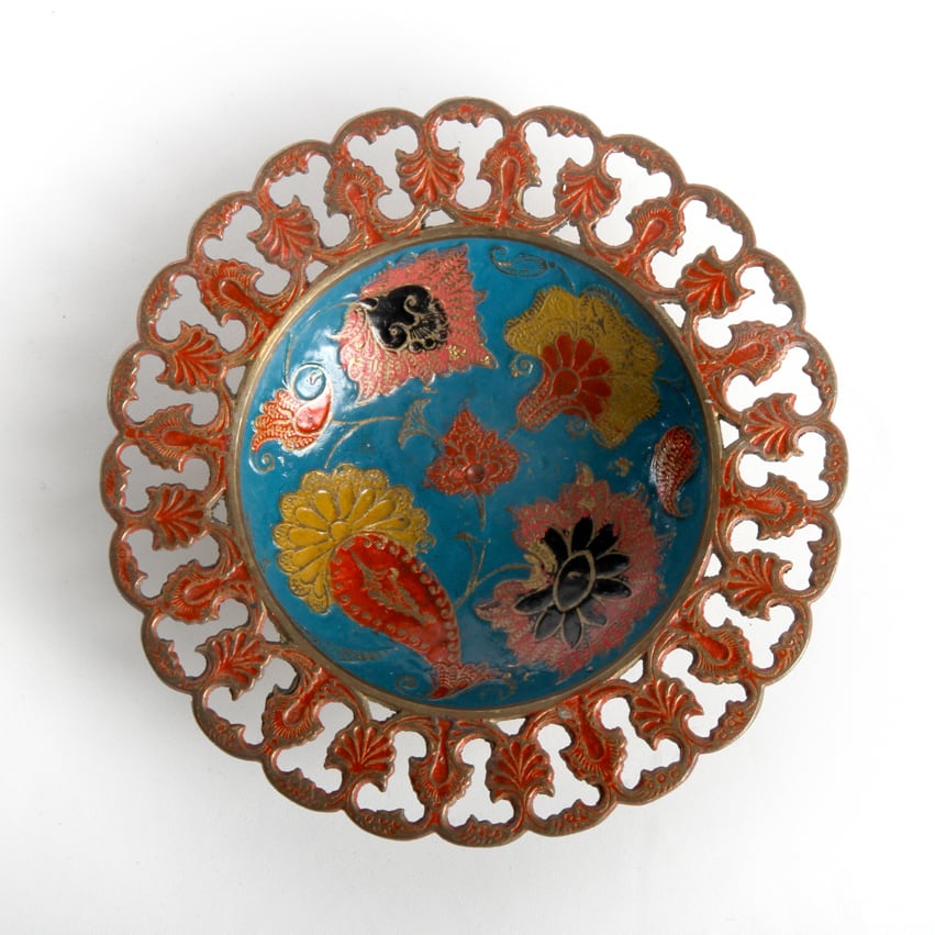 細かな透かしの縁取りにオリエンタルな絵付け。