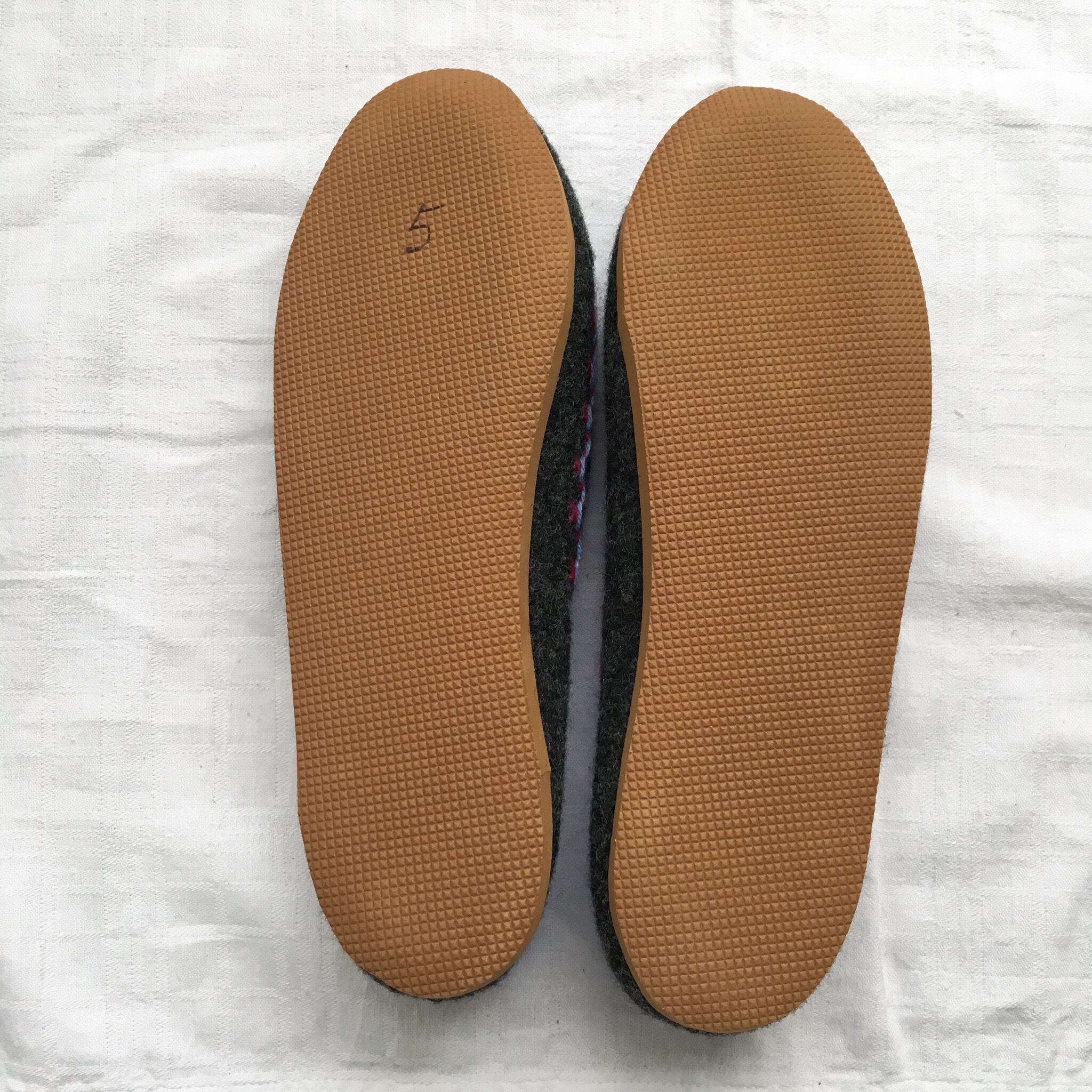 裏はゴム張りなので外でも履けますし、ルームシューズとしてもお薦めです。