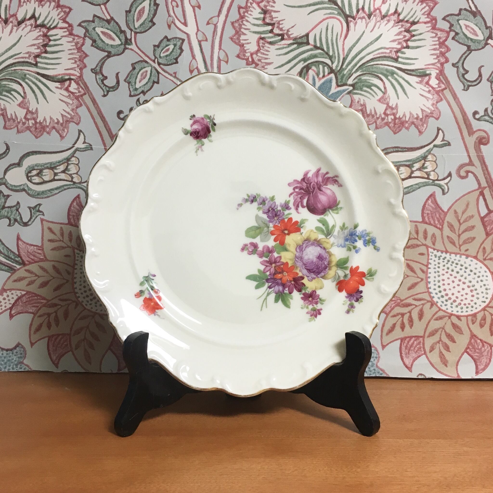 可愛らしい花のモチーフと金の縁取りのリムがポイント。