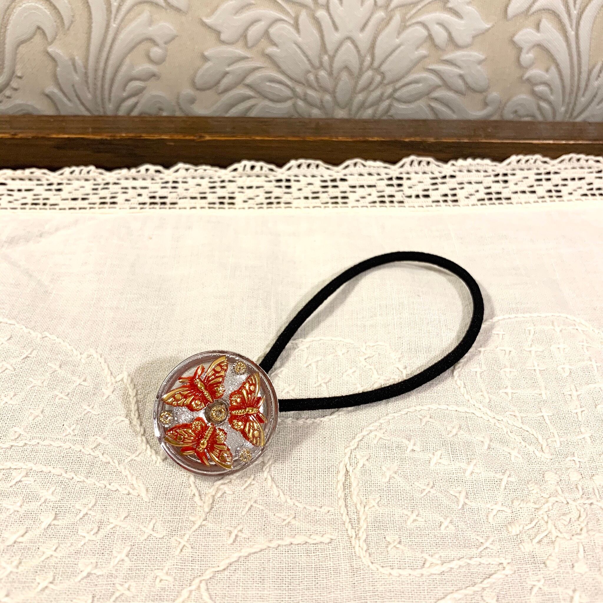 チェコで買い付けた手づくりのガラスボタンを使用したヘアゴムです。