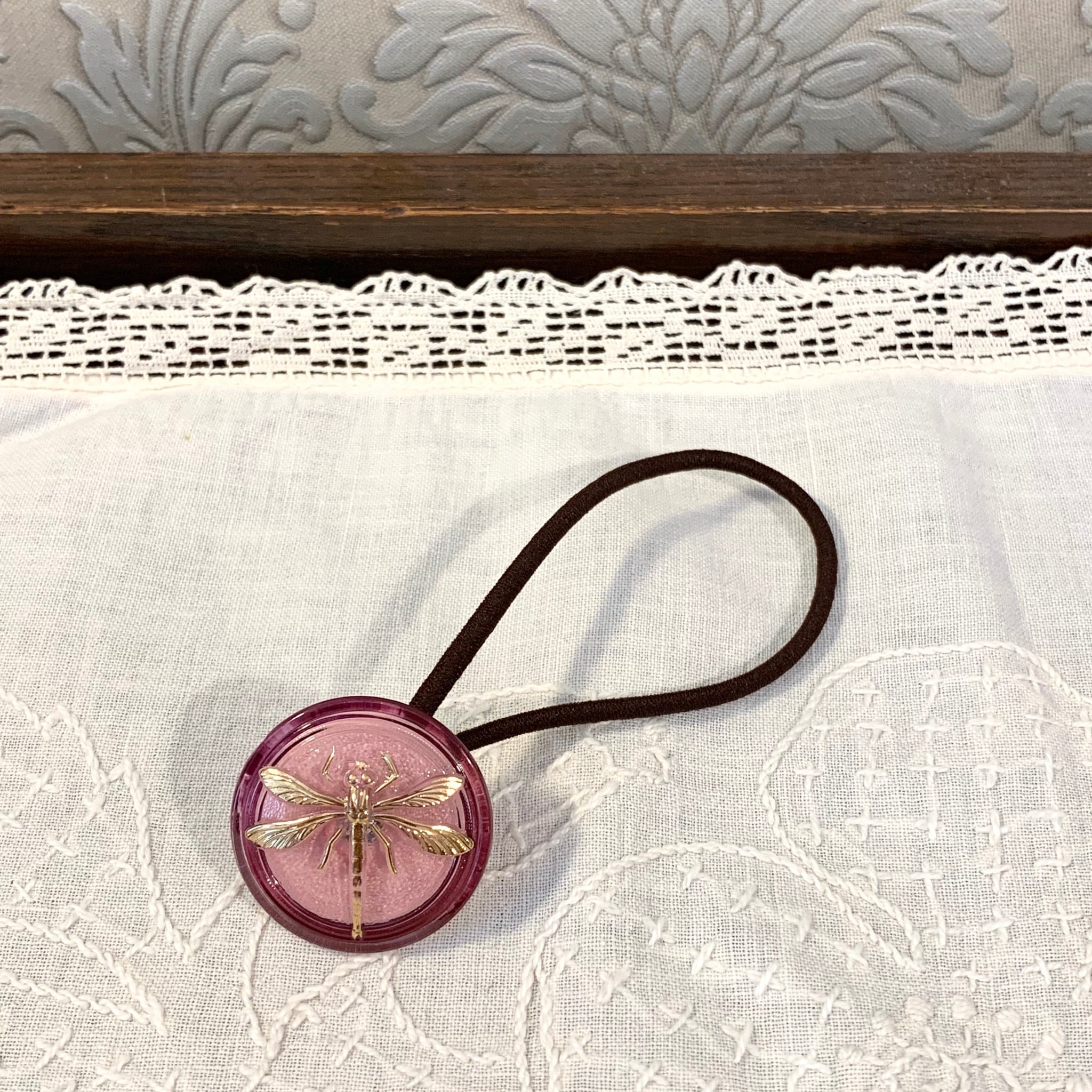 チェコで買い付けた手づくりのガラスボタンを使用したヘアゴムです。