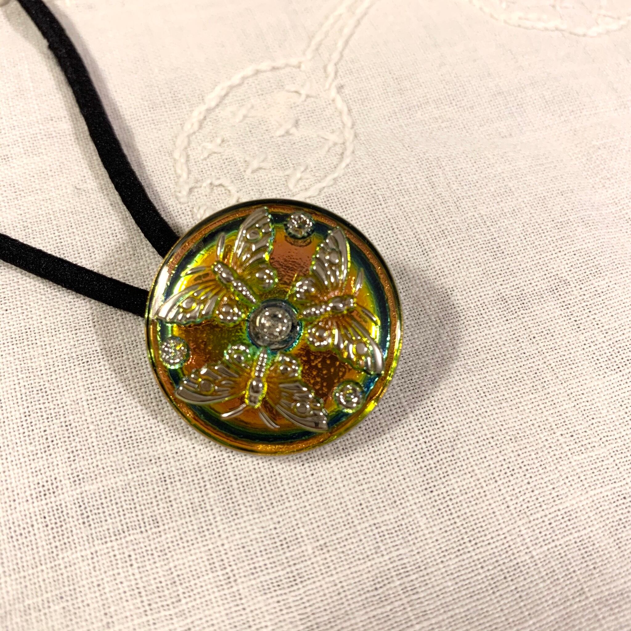チェコで買い付けた手づくりのガラスボタンを使用したヘアゴムです。