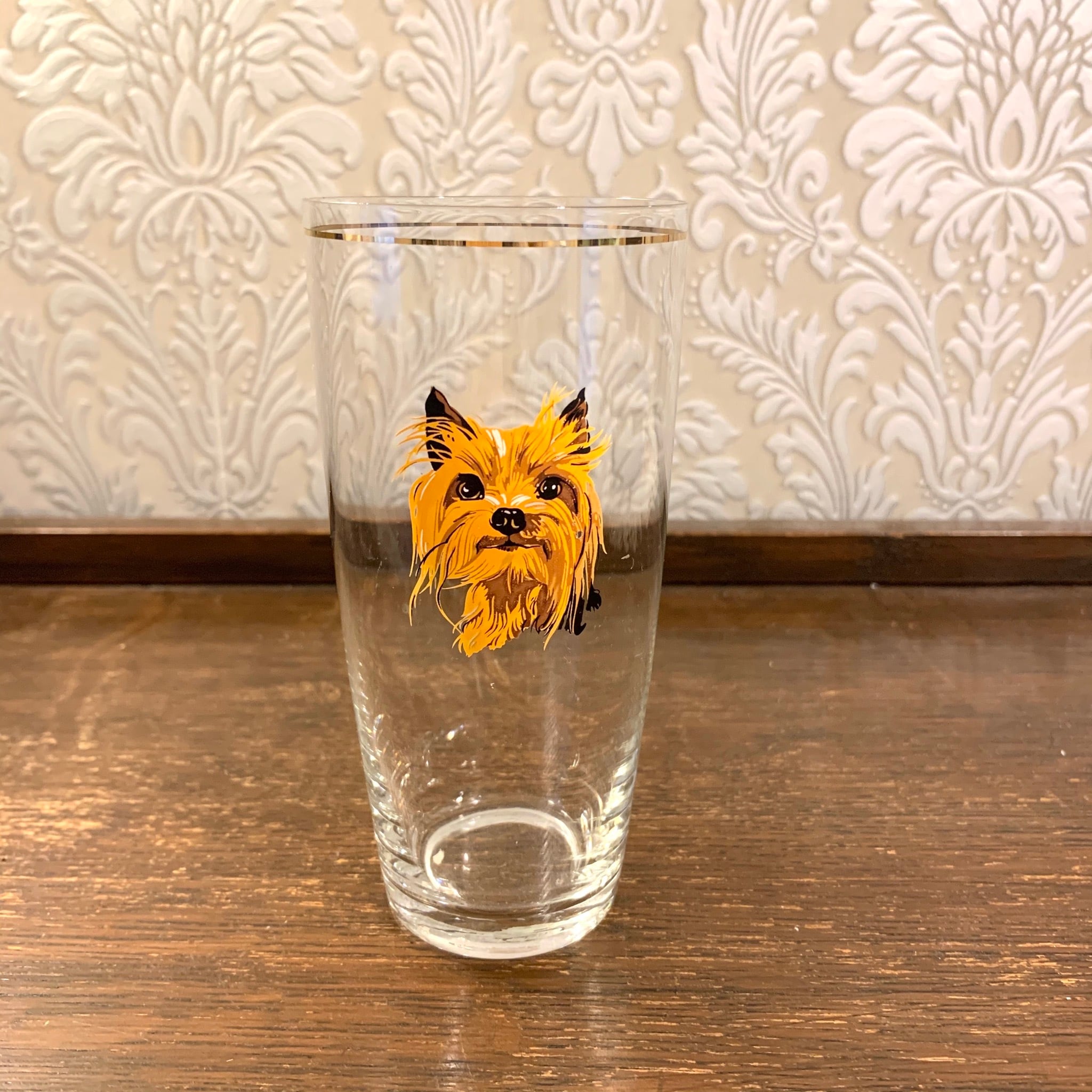 ヨークシャー・テリアの柄が絵付けされたグラスです。