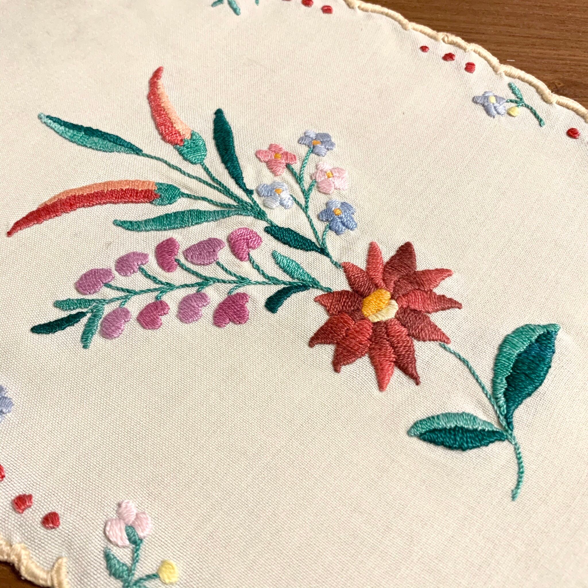 ハンガリーの伝統刺繍カロチャ刺繍のクロス。