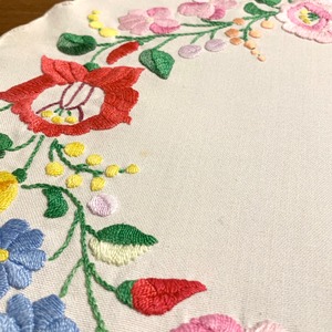 ハンガリーの伝統刺繍カロチャ刺繍のクロス。