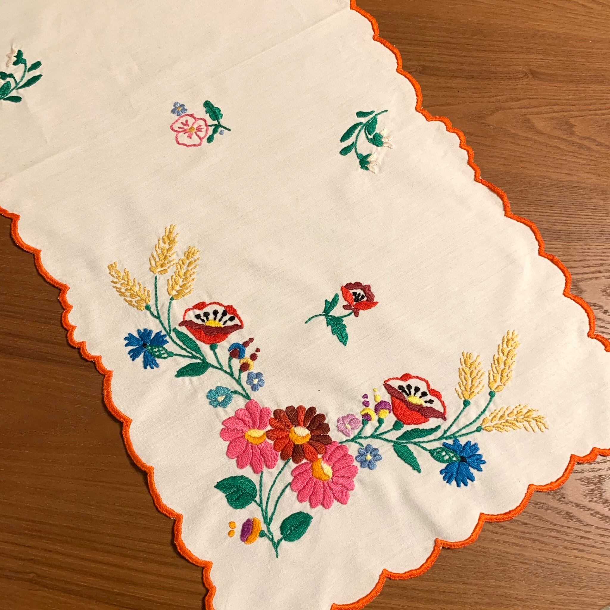 ハンガリーの伝統刺繍カロチャ刺繍のクロス。