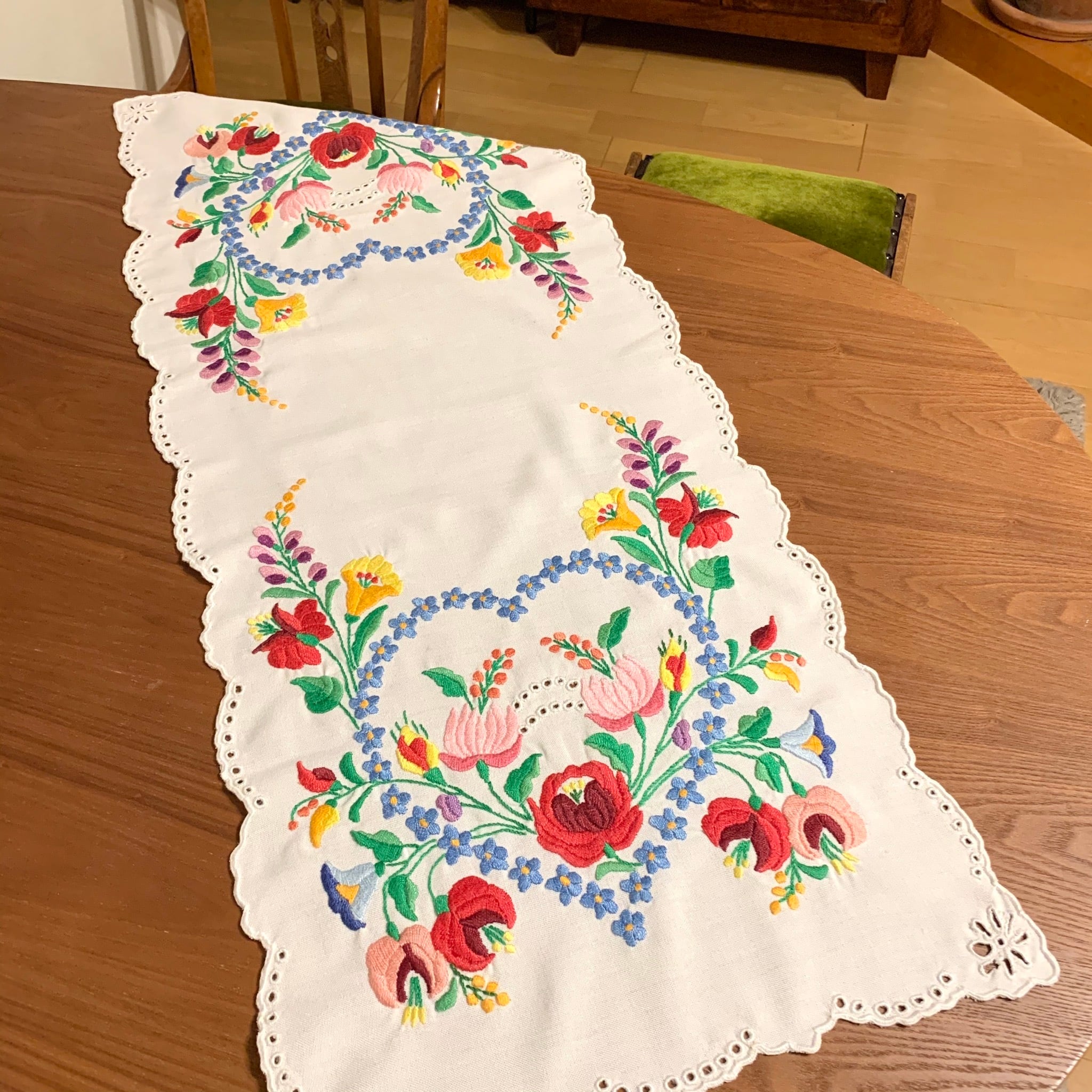 ハンガリーの伝統刺繍カロチャ刺繍のクロス。