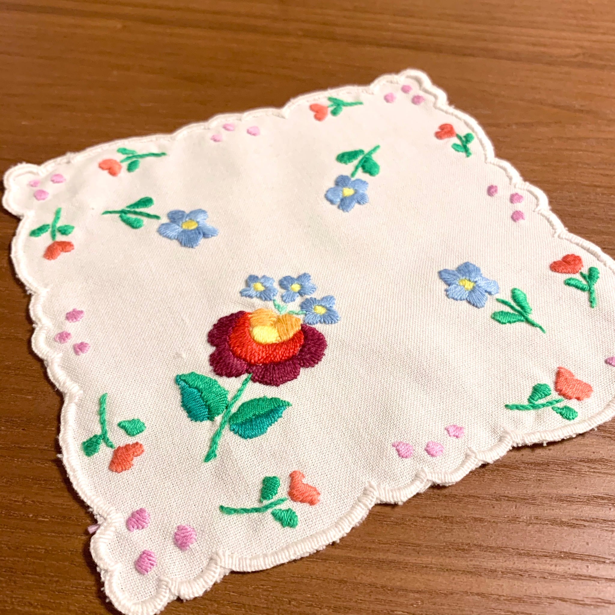 ハンガリーの伝統刺繍カロチャ刺繍のクロス。
