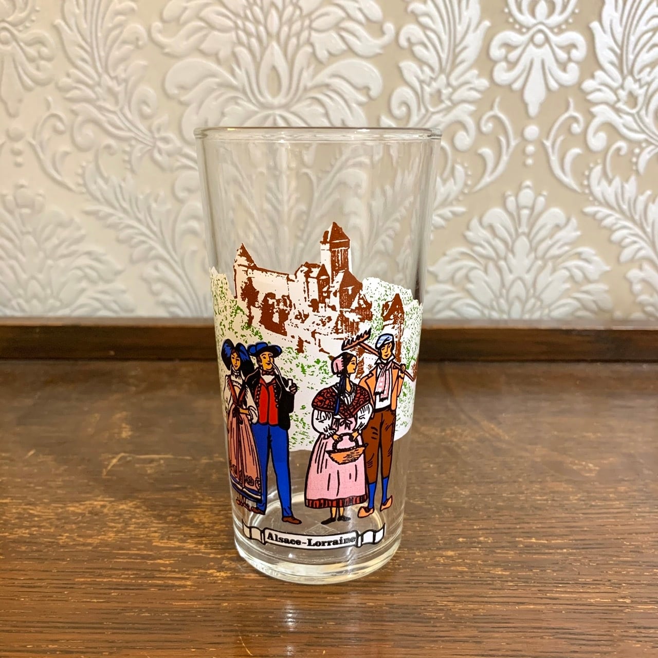 フランスのアルザス=ロレーヌ地方の表記があり、伝統的なアルザス地方の民族衣装を着た女性の絵柄が可愛らしいデザイン。