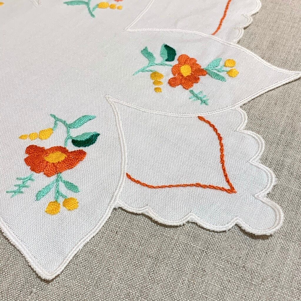 フラワー型に形取られたデザインが素敵なハンガリーの刺繍のクロス。