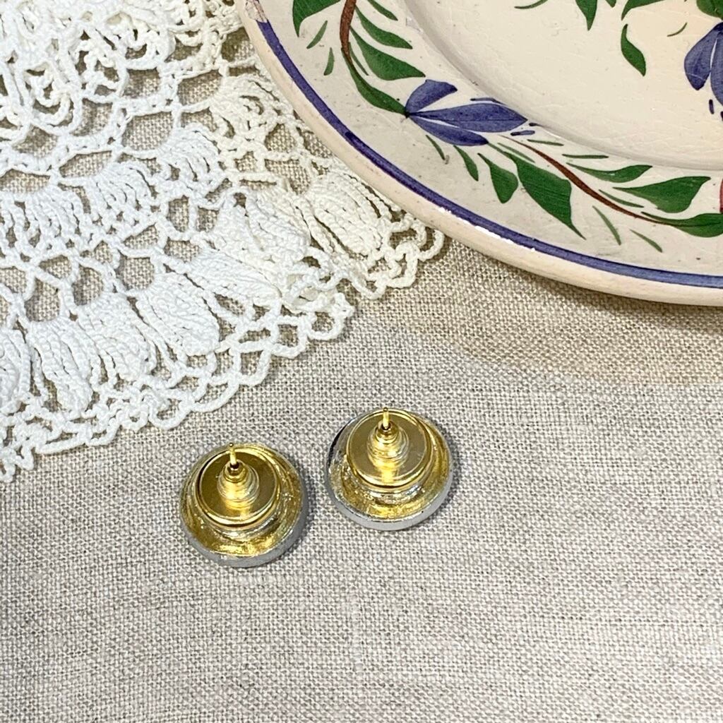 チェコで買い付けた手づくりのガラスボタンを使用したイヤリング・ピアスです。