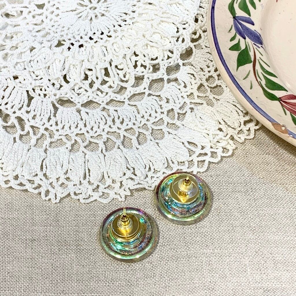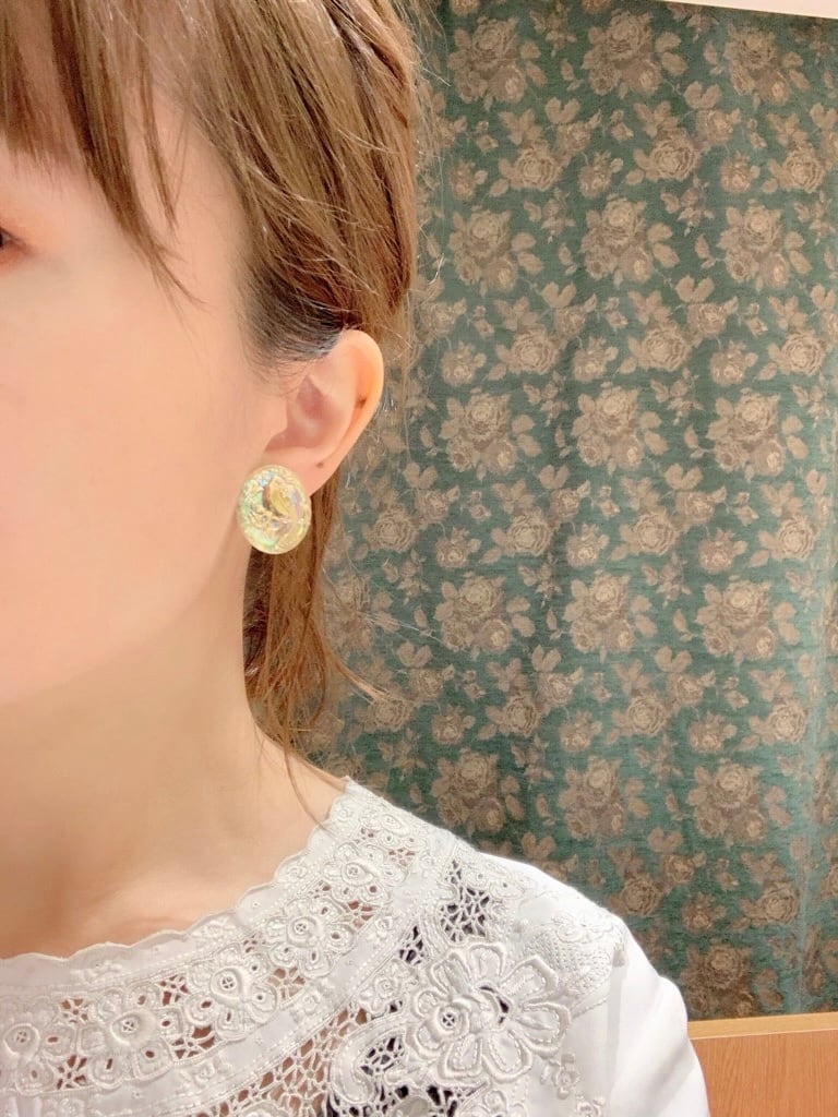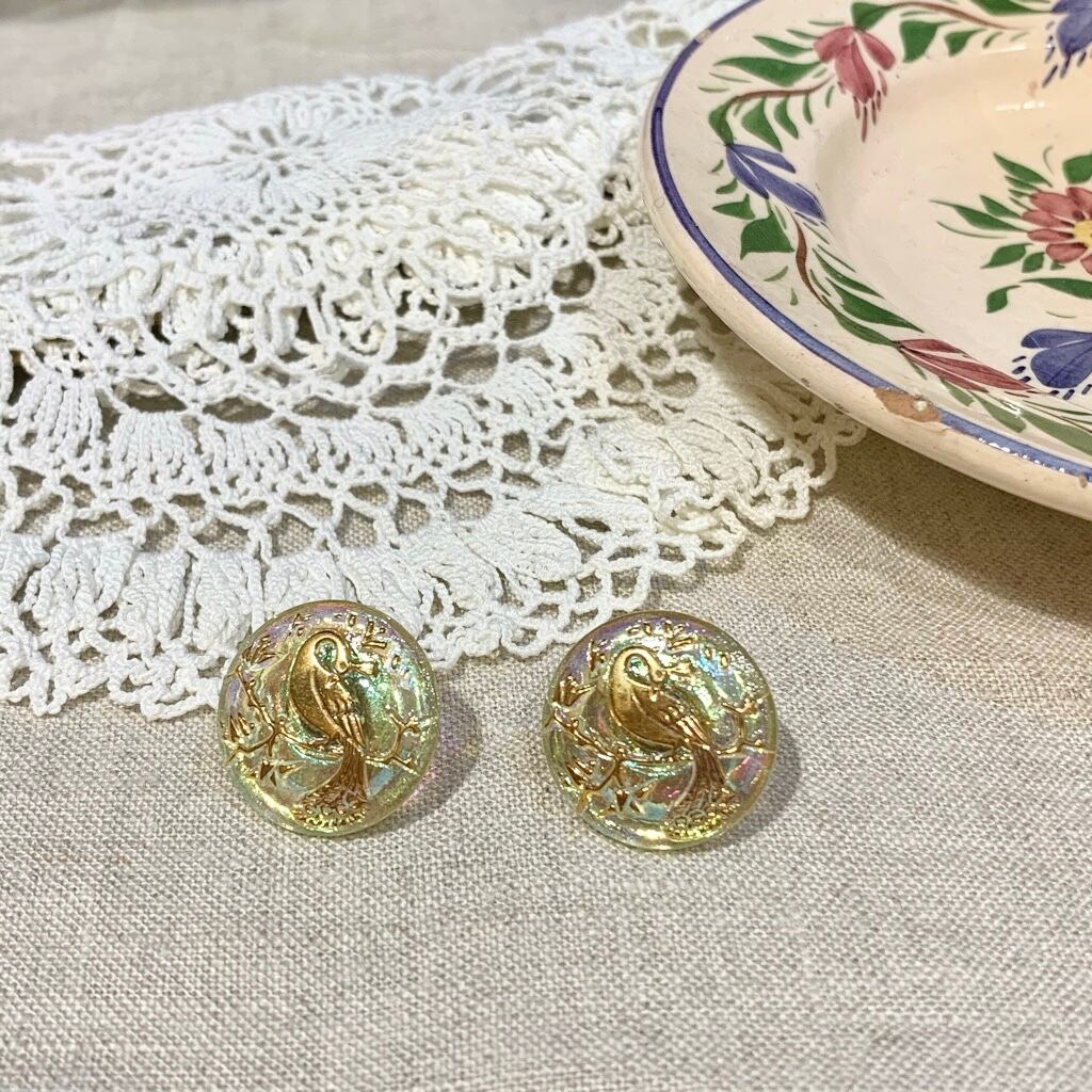 チェコで買い付けた手づくりのガラスボタンを使用したイヤリング&ピアスです。
