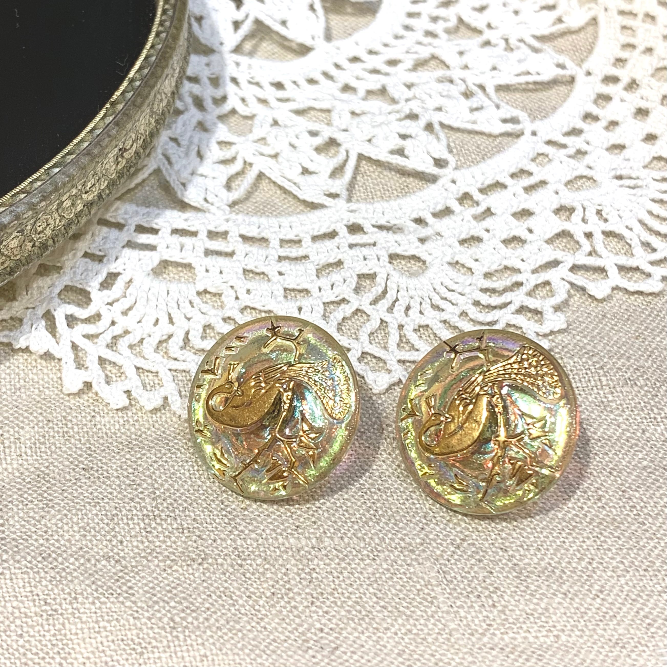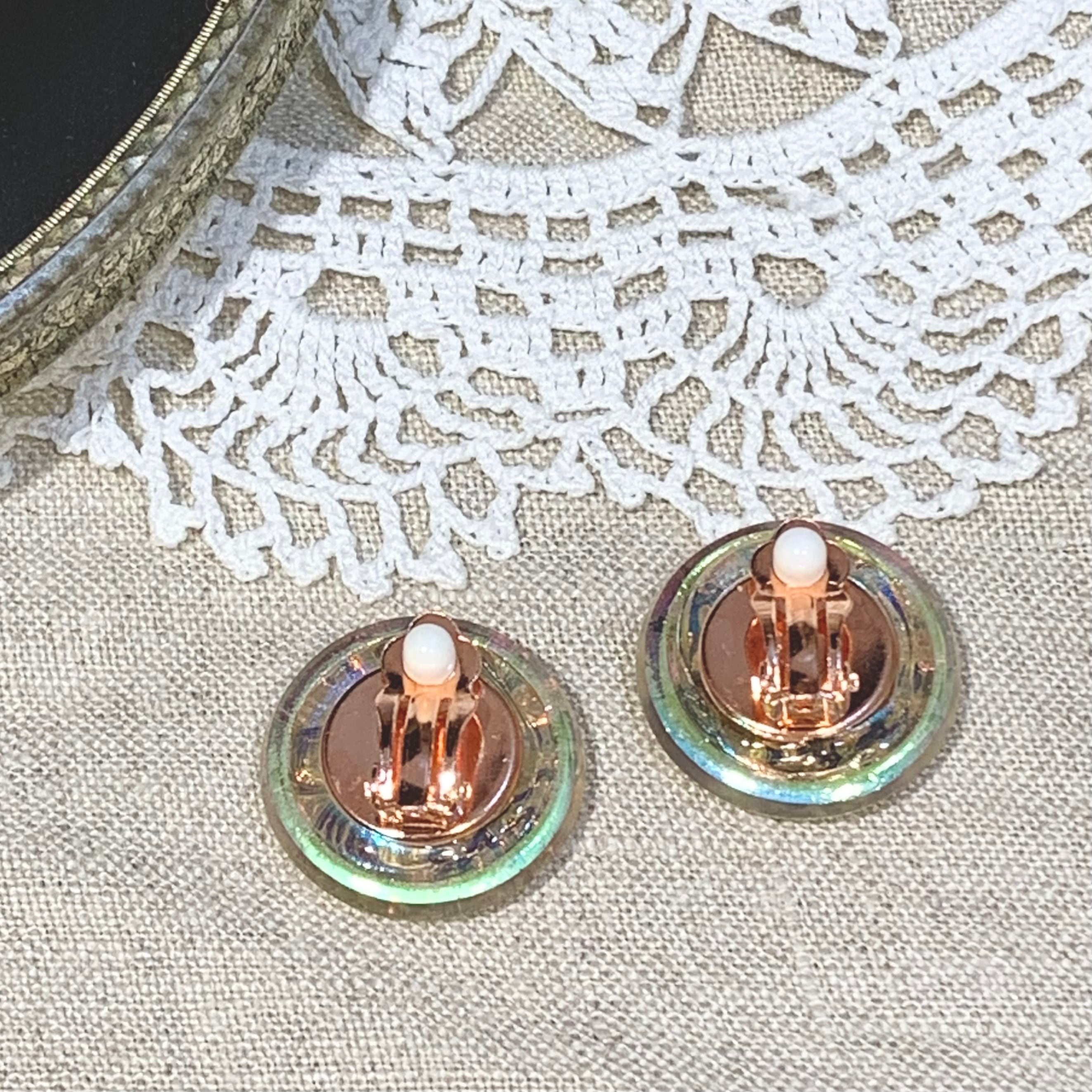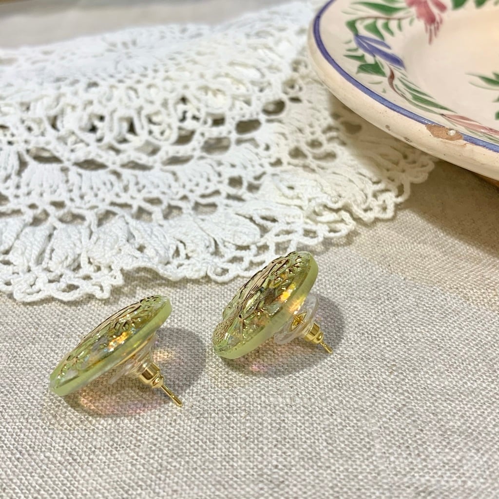 チェコで買い付けた手づくりのガラスボタンを使用したイヤリング&ピアスです。