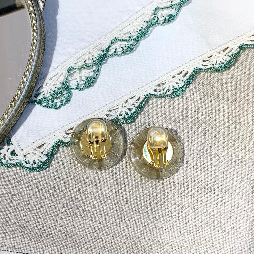 チェコで買い付けたヴィンテージ のガラスボタンを使用したイヤリング・ピアスです。