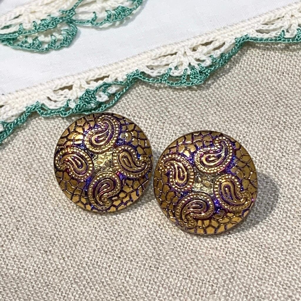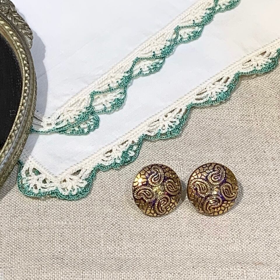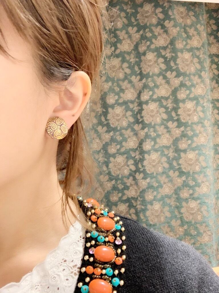 チェコで買い付けた手づくりのガラスボタンを使用したイヤリング&ピアスです。