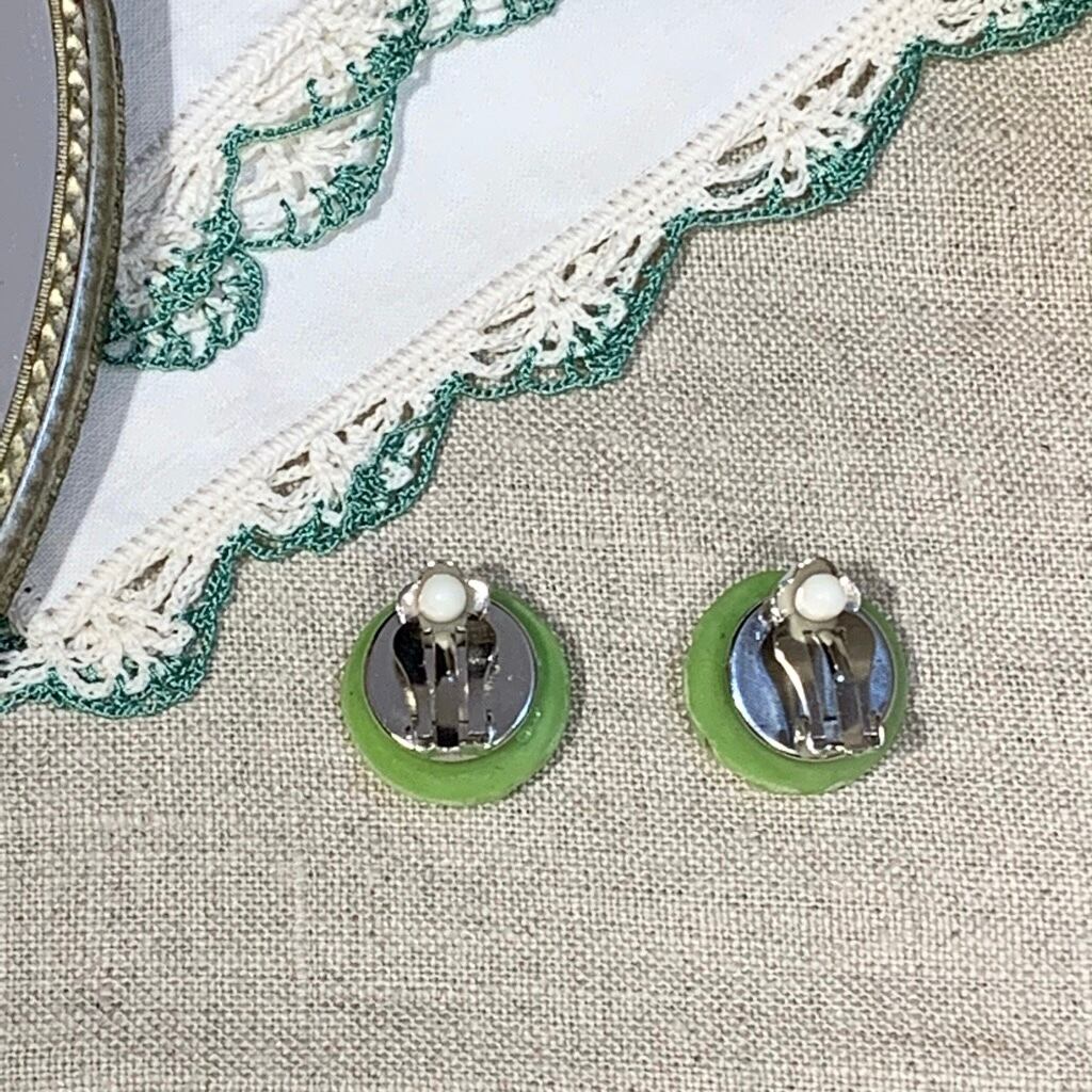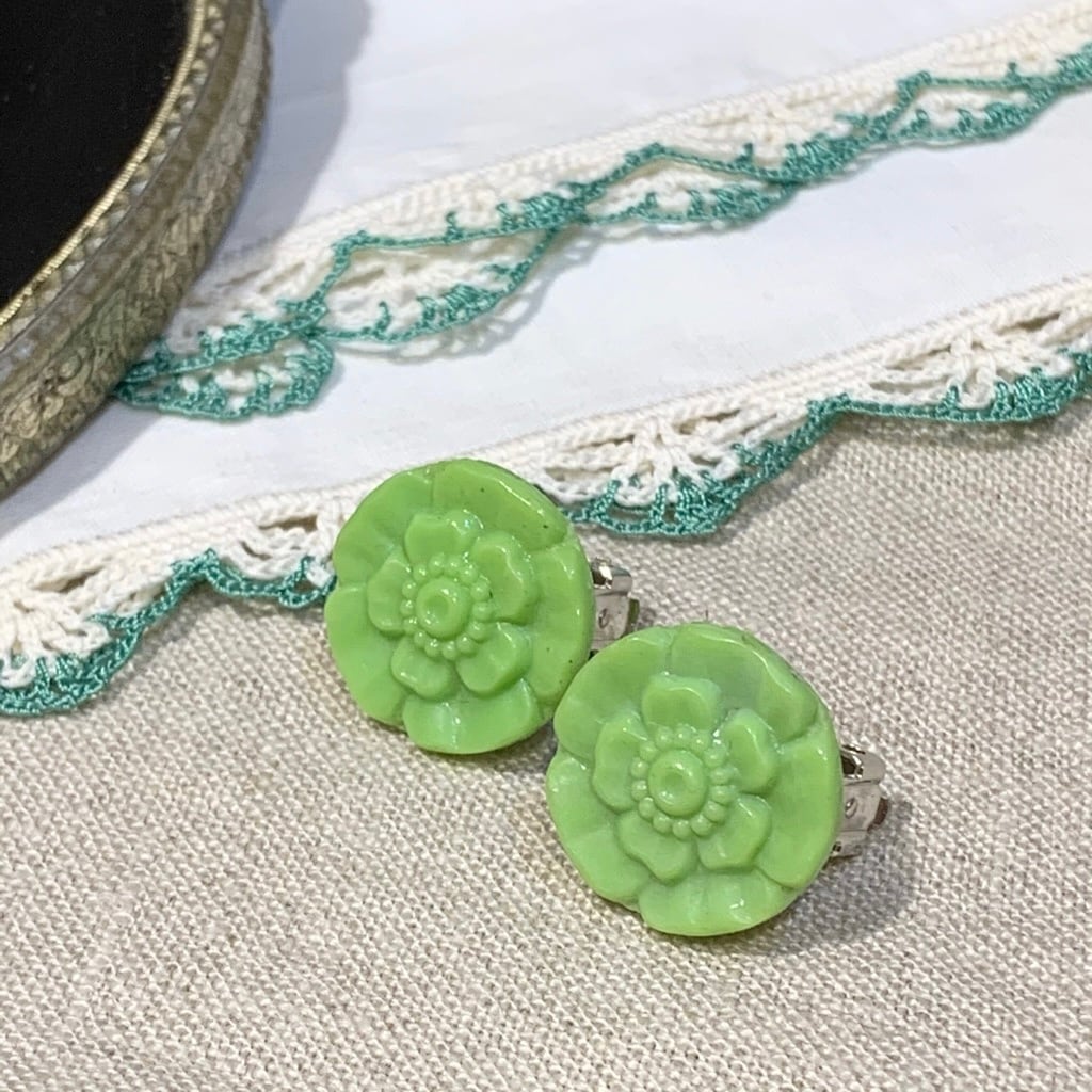 チェコで買い付けたヴィンテージ のガラスボタンを使用したイヤリングです。