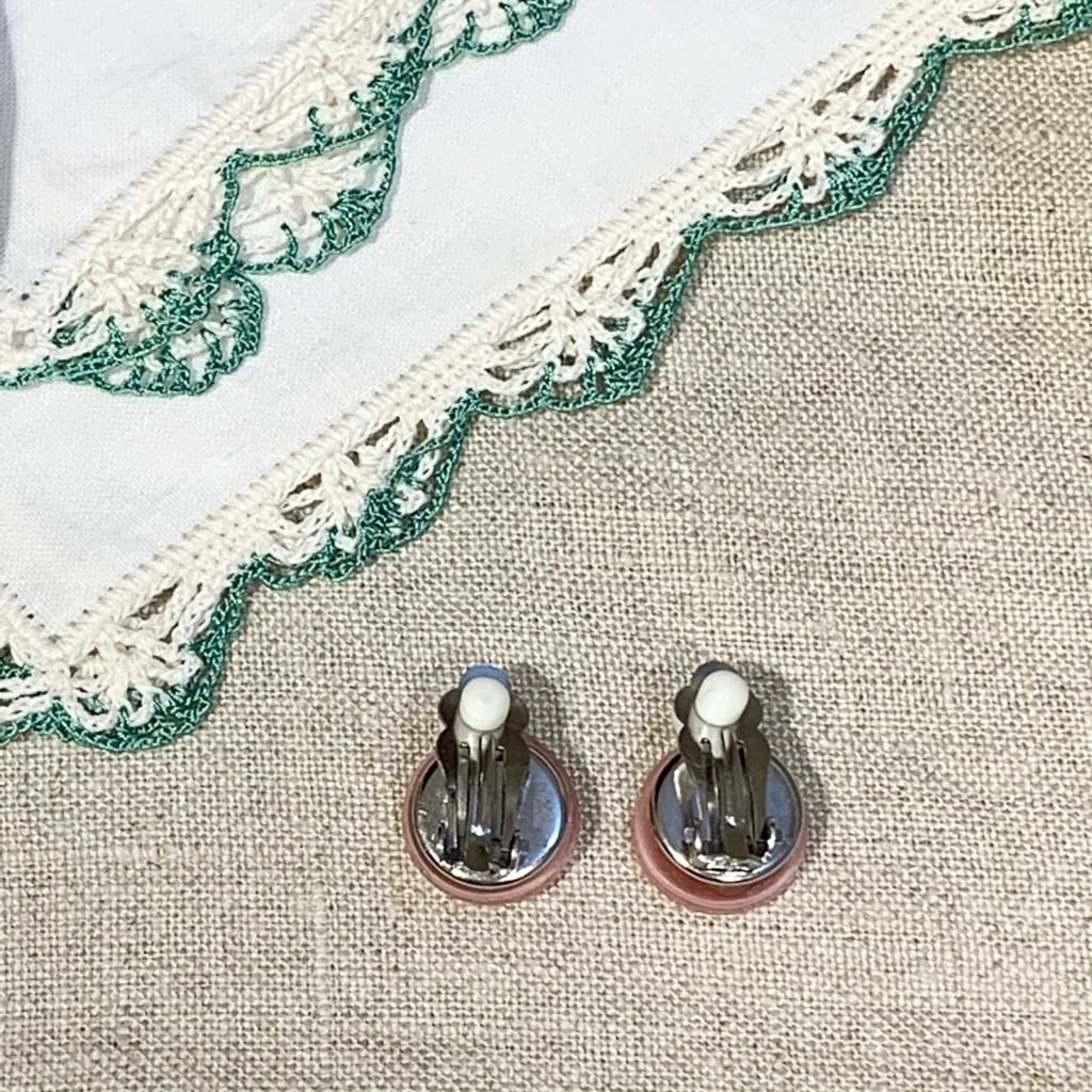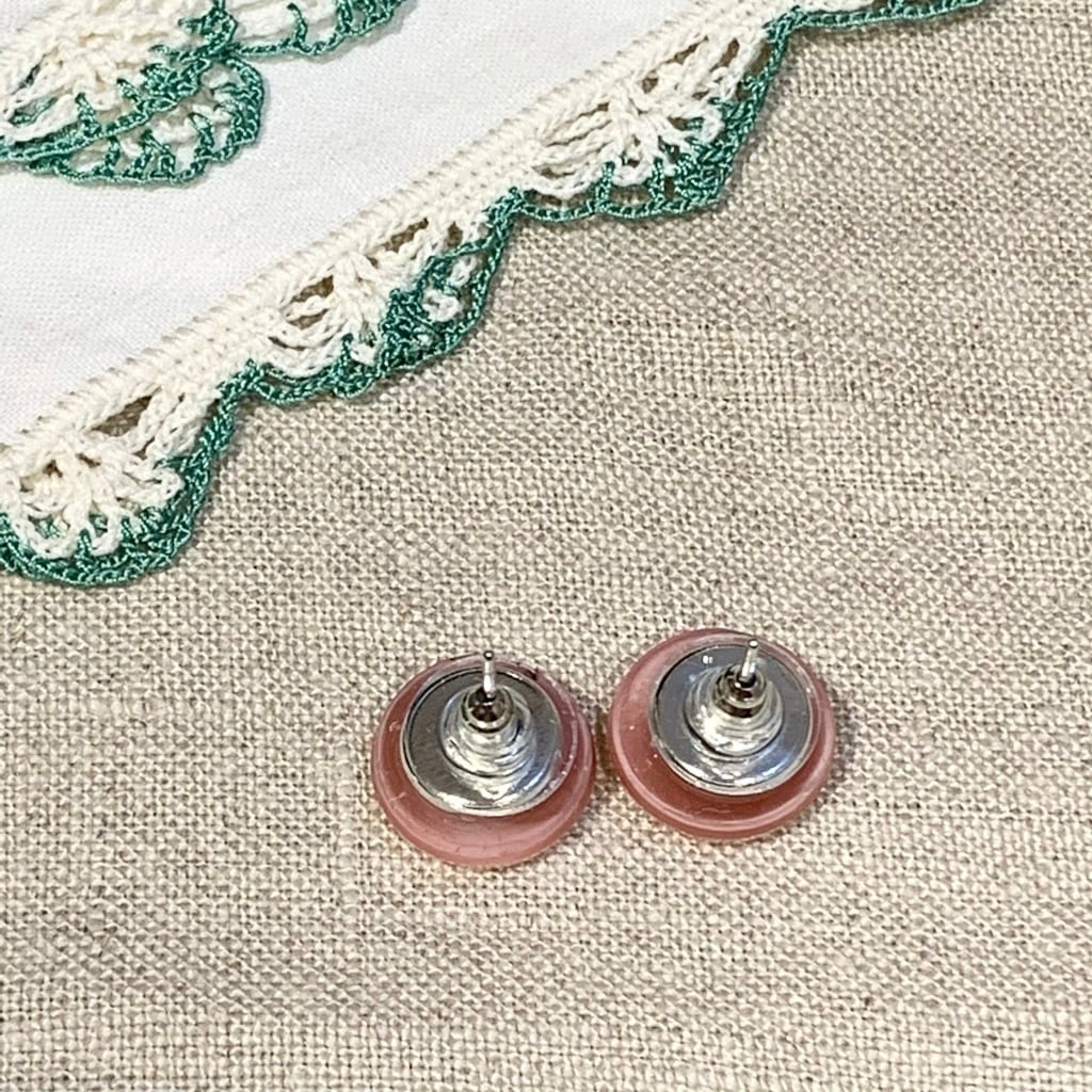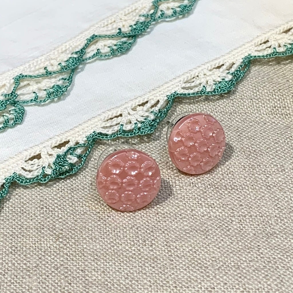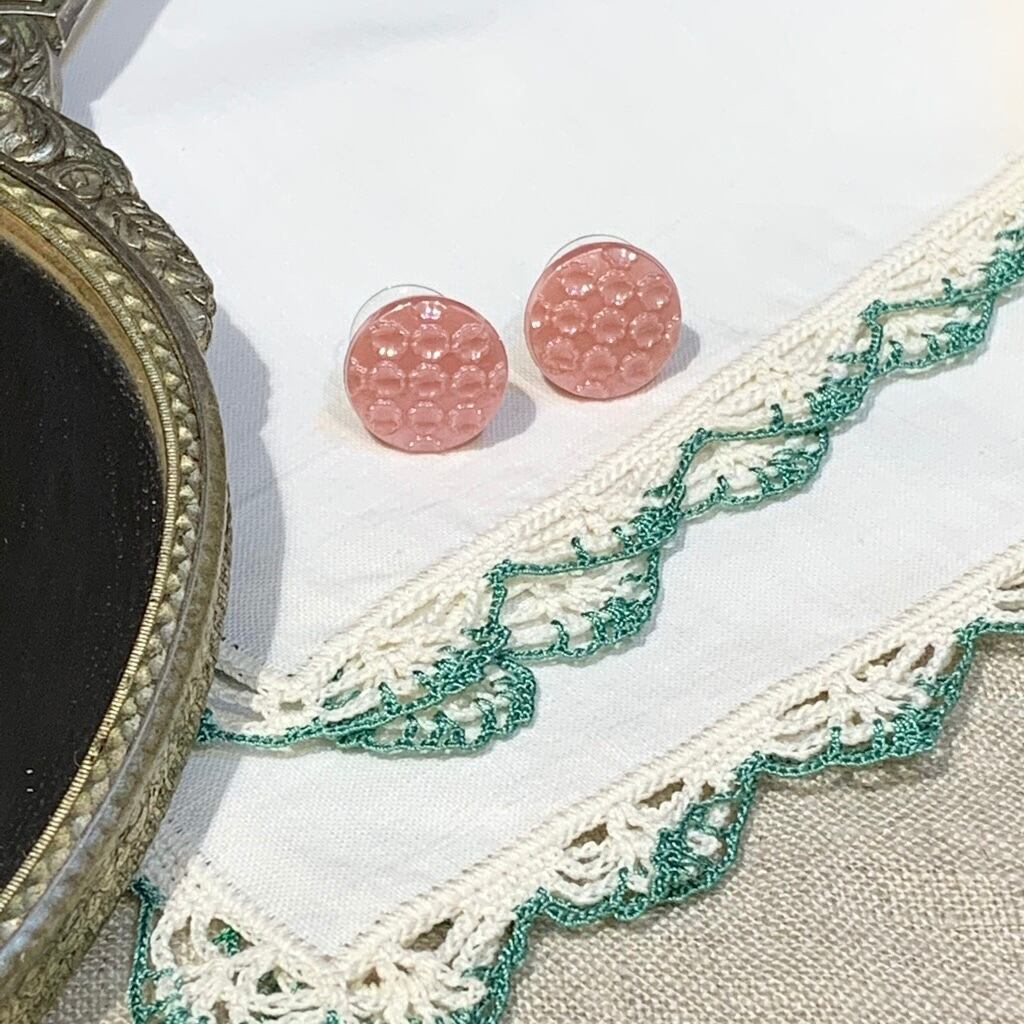 小ぶりなピンクの可愛らしいボタンをアクセサリーに仕立てました。