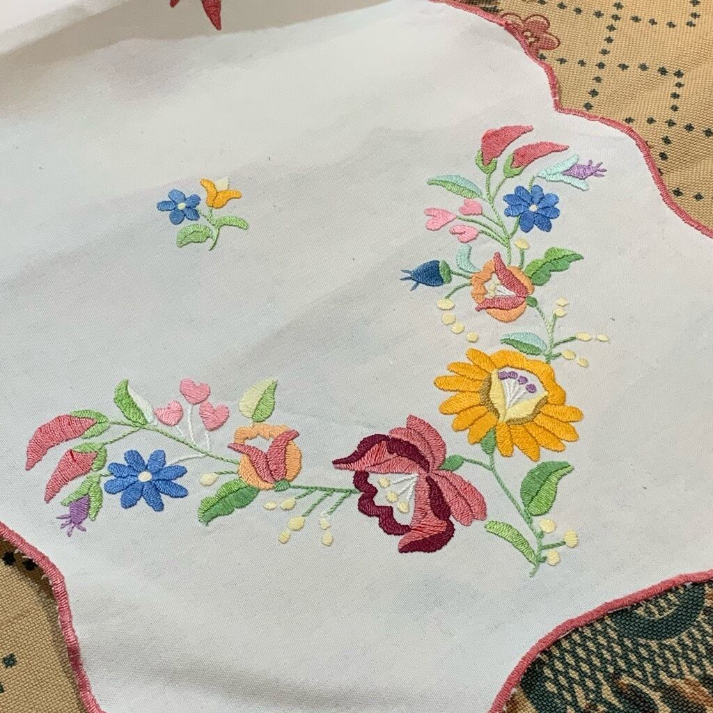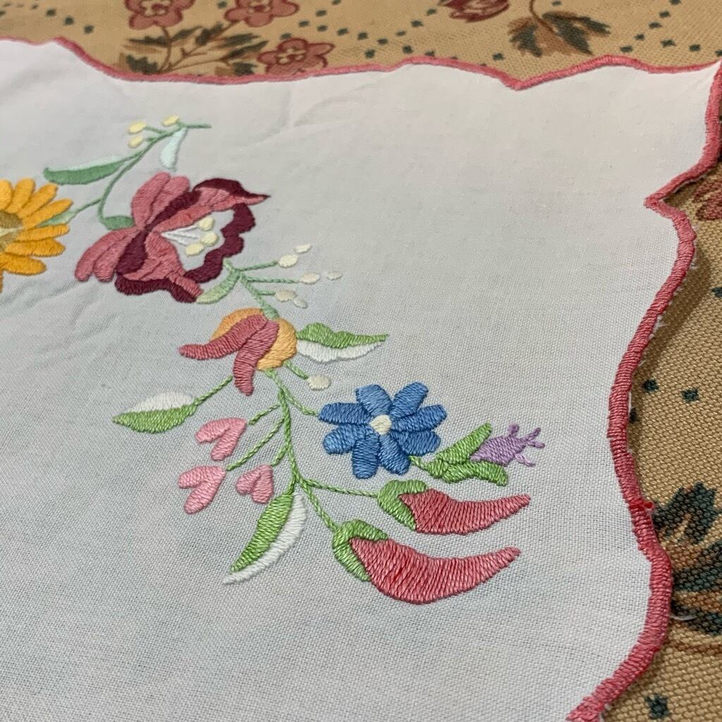 使い込まれたのか、優しいカラーに色落ちしたハンガリーの刺繍クロス。