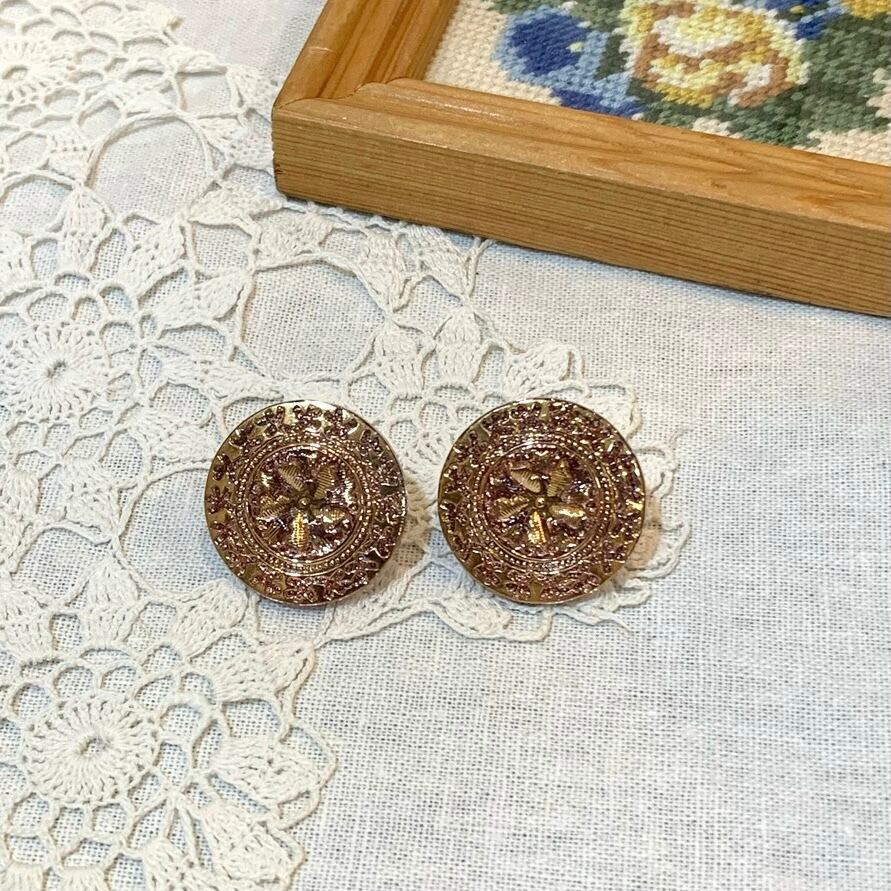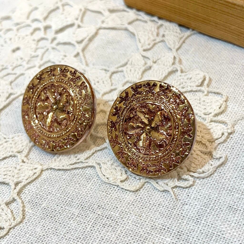 ピンクゴールドの着色が美しいボタンで角度によって輝きに変化が出ます。