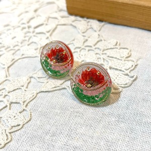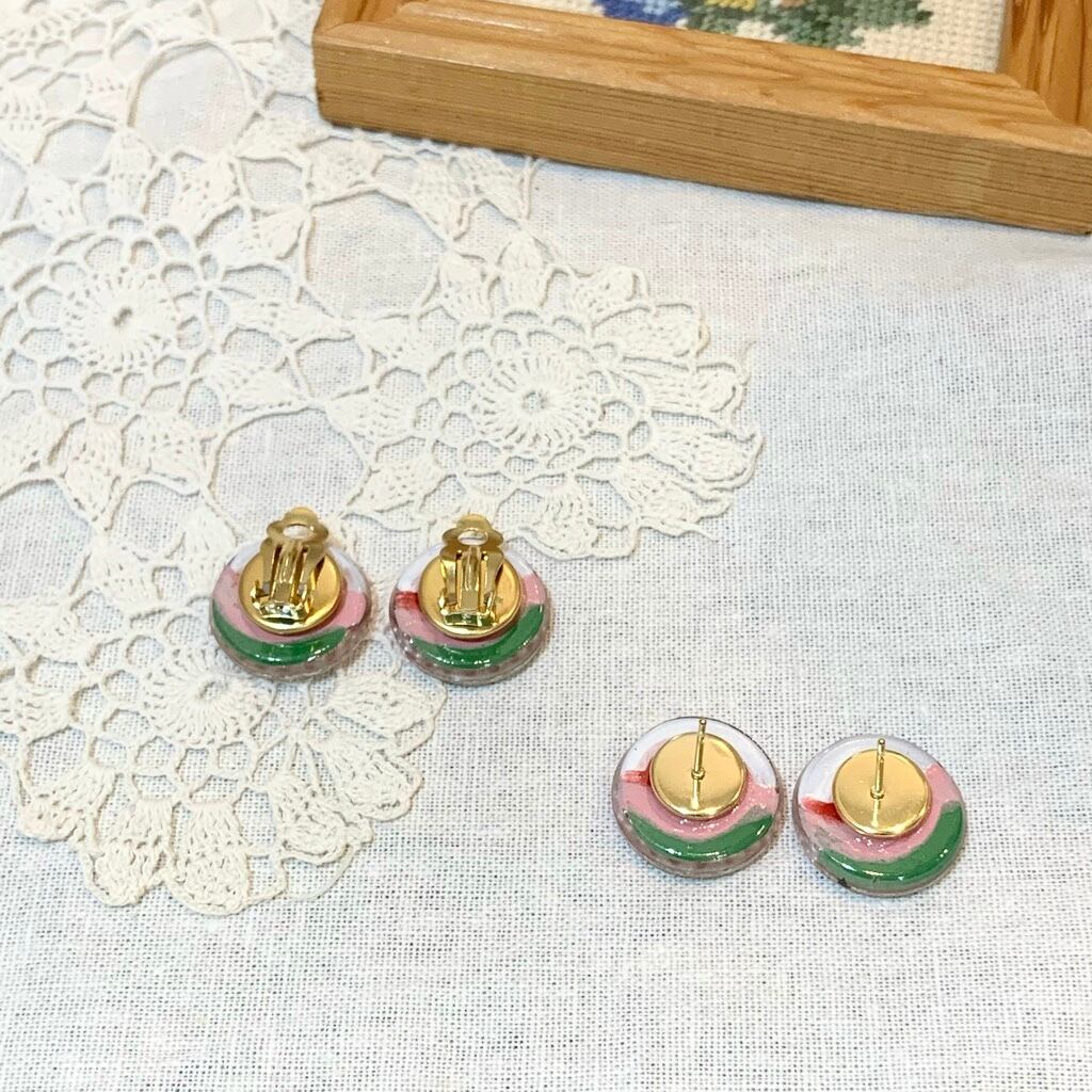 チェコで買い付けた手づくりのガラスボタンを使用したイヤリングとピアスです。