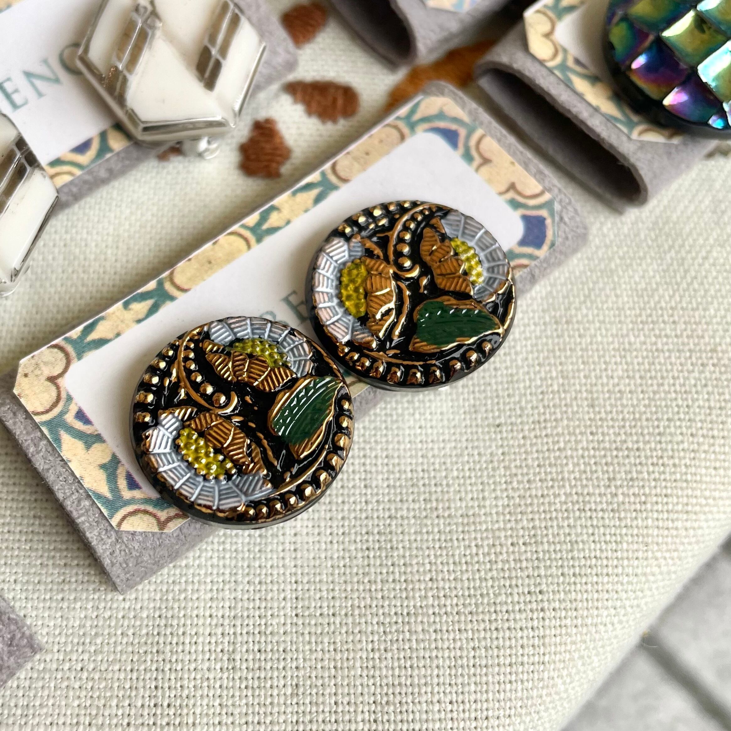 チェコで買い付けた手づくりのガラスボタンを使用したピアスです。